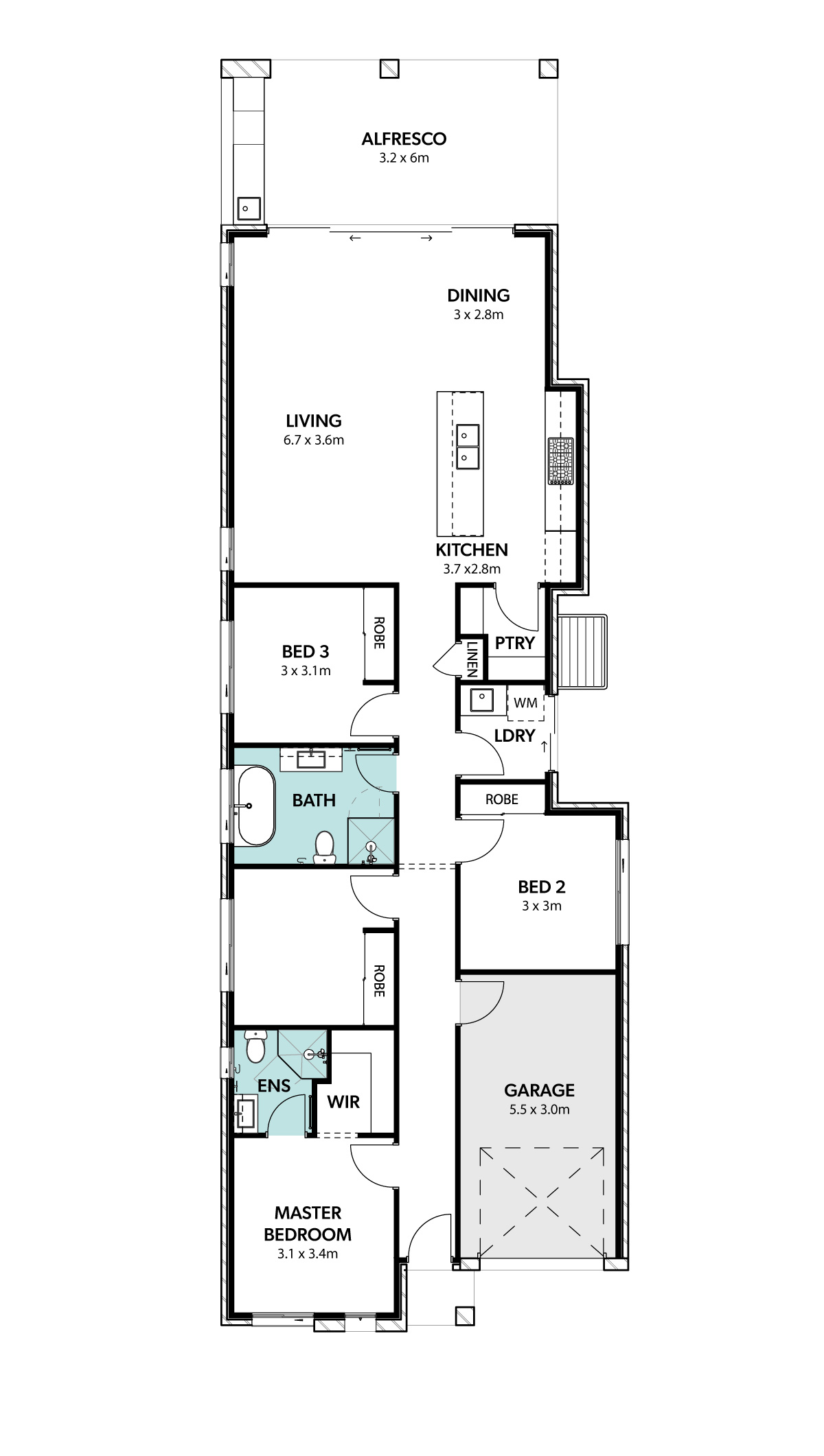 Designed for lots as small as 10m, the Edgecliff 16 is perfect for the growing family, customised here to accomadate 4 bedrooms. This home features open plan living, a galley kitchen with a large island bench and walk-in pantry. The edgecliff is ideal and and practical for the modern family.