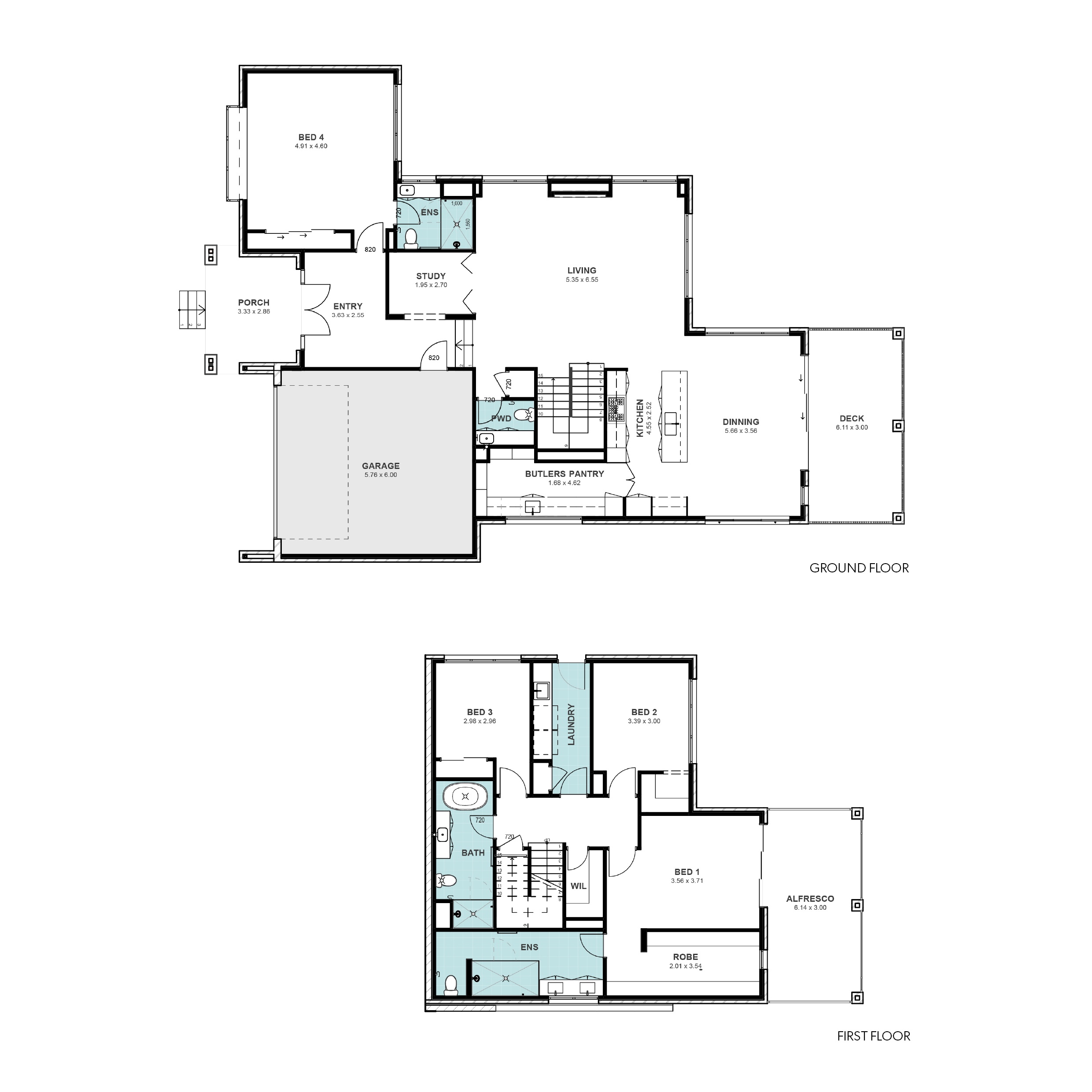 • Bathrooms with custom stone benchtop vanities, frameless shower screens, overhead showers, Caroma accessories