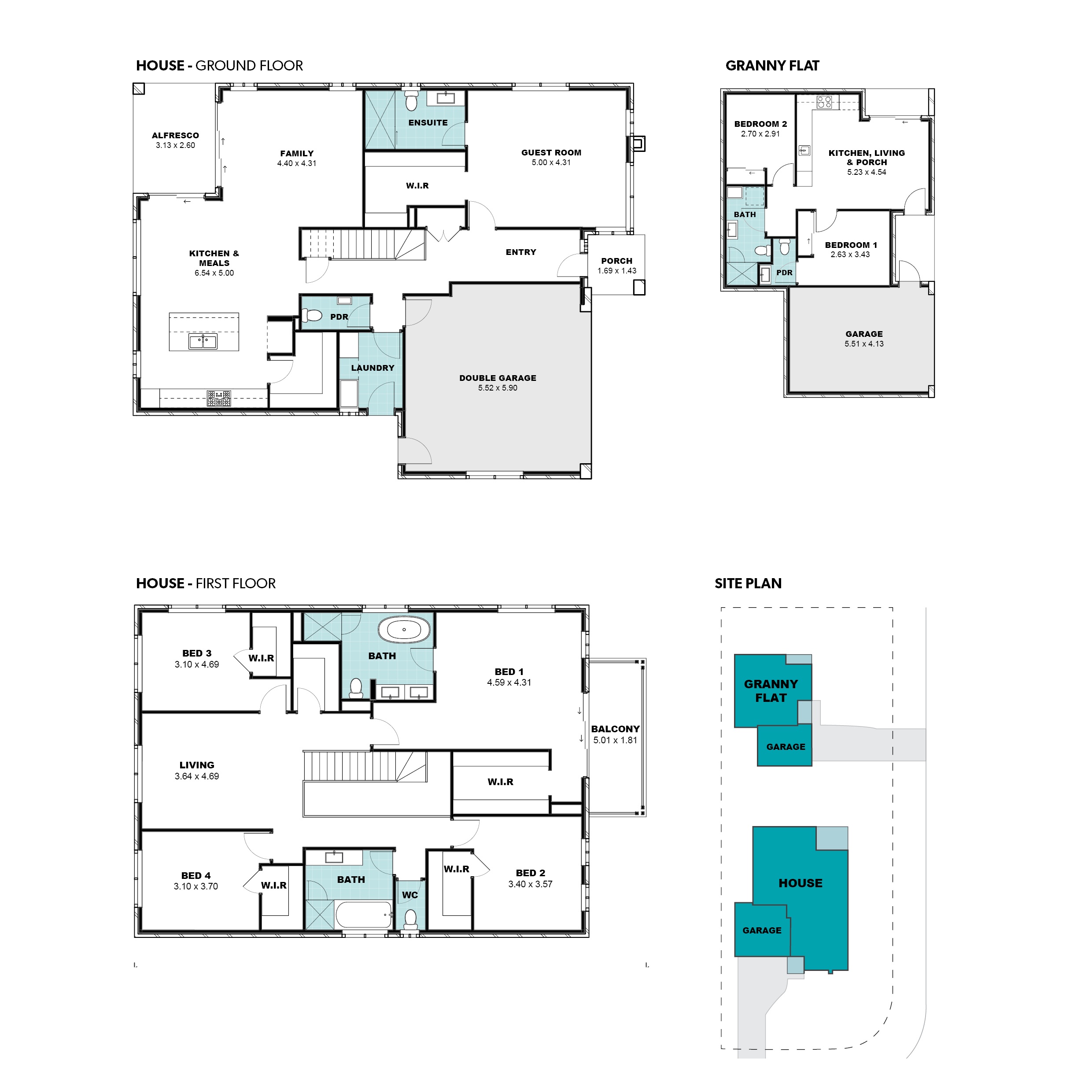 - 60m2 Granny Flat with attached Garage: 2 Bedrooms, Powder Room & Bathroom with Laundry and single Garage