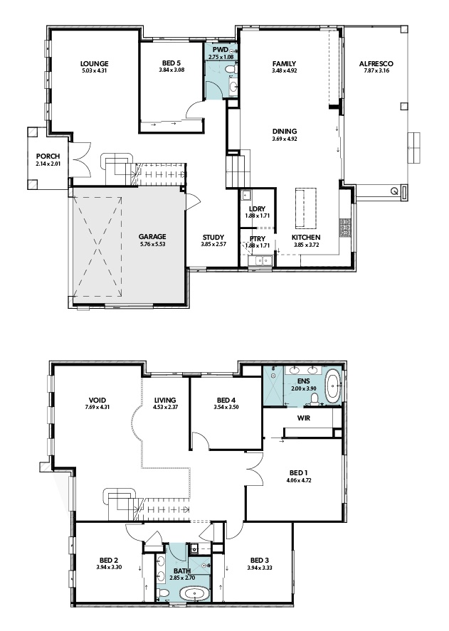 2700mm High Ceiling to Lounge, Bed 5, Study, Entry and First floor