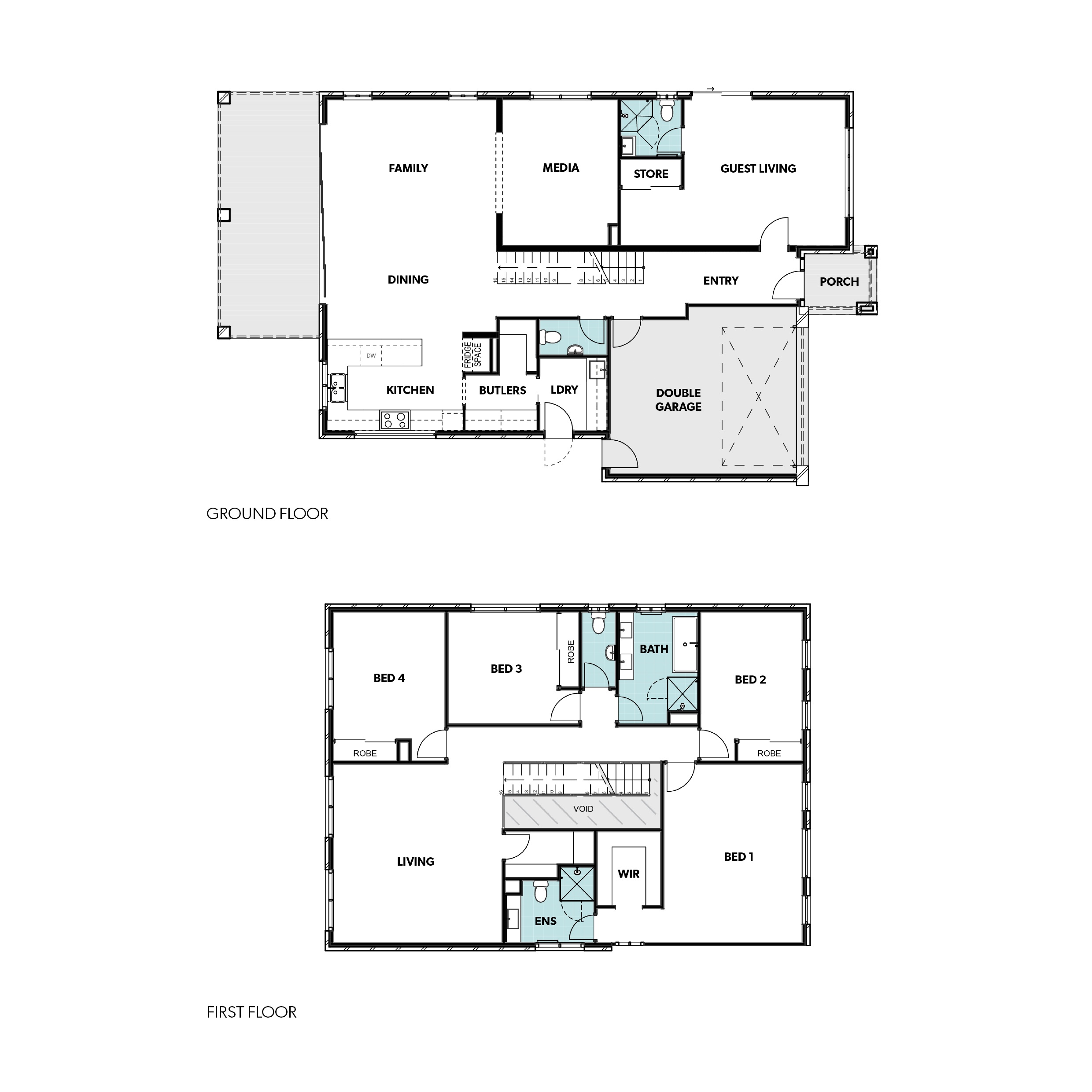 - Designer Kitchen featuring 20mm stone benchtop with waterfall edge and pendant lights above, two-toned polyurethane cabinetry, canopy rangehood, double undermount sink, gooseneck mixer and Butlers Pantry.