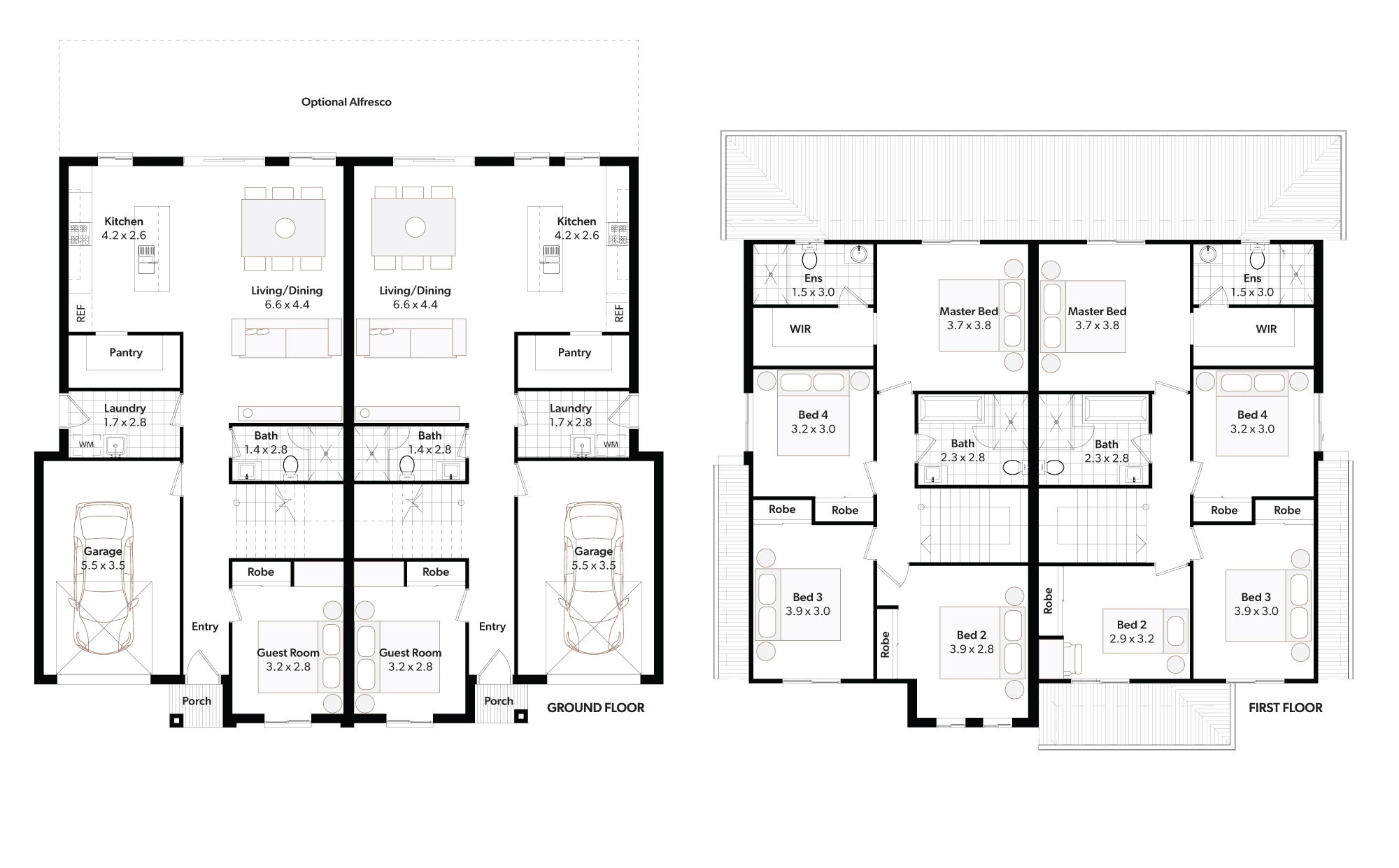 The Arncliffe 42 is a duplex with family living in mind, with a guest bedroom downstairs perfect for older family members and an open plan living/dining with a kitchen with walk in pantry. This home is sure to delight.