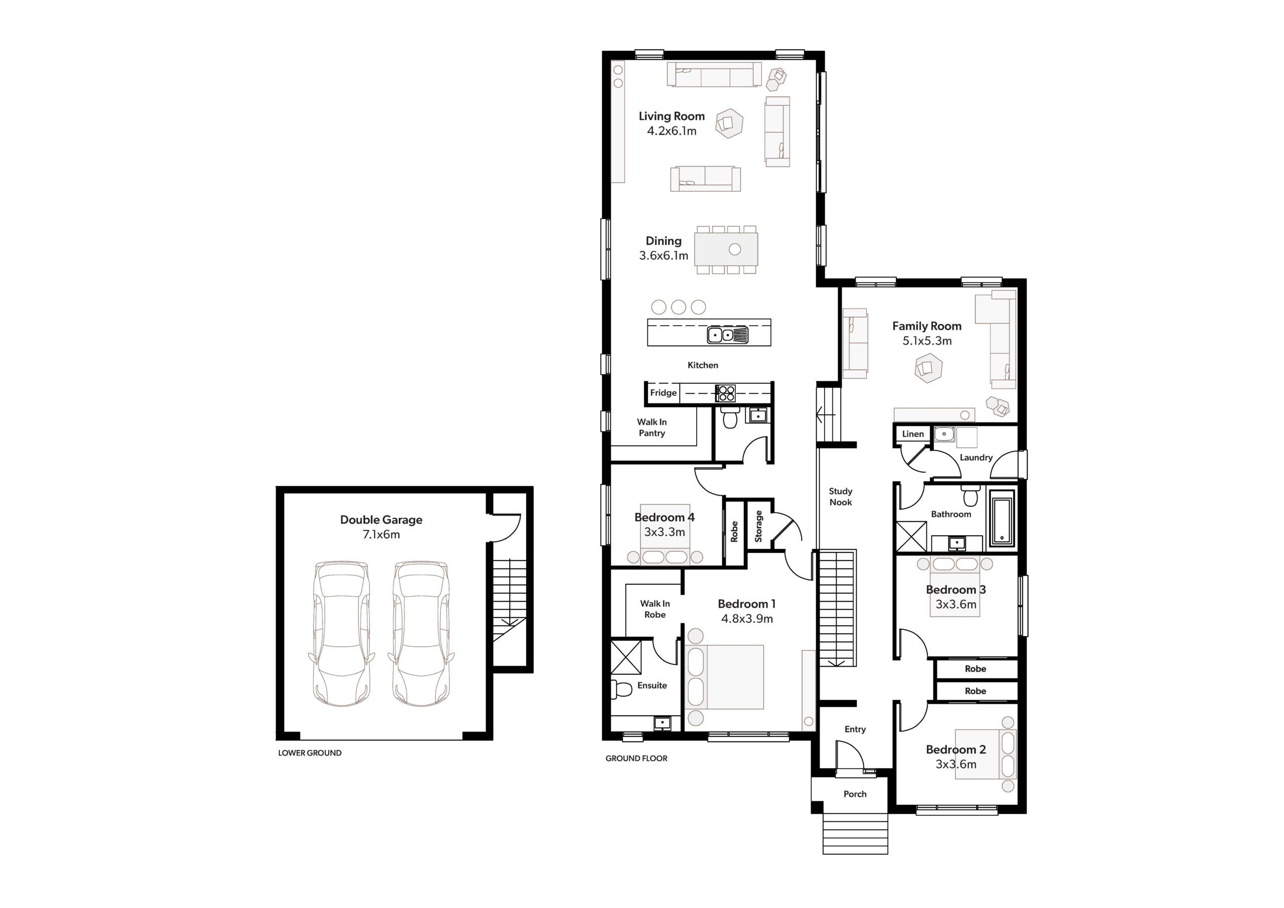 The Blaxland 30 is perfect for sloping lots. Consisting of a split-level design, this well laid out home provides four good sized bedrooms including an oversized master suite, along with 2.5 bathrooms, separate living area and an open plan kitchen/family/dining area. Everything you need in a home packaged together into a thoughtfully designed layout.