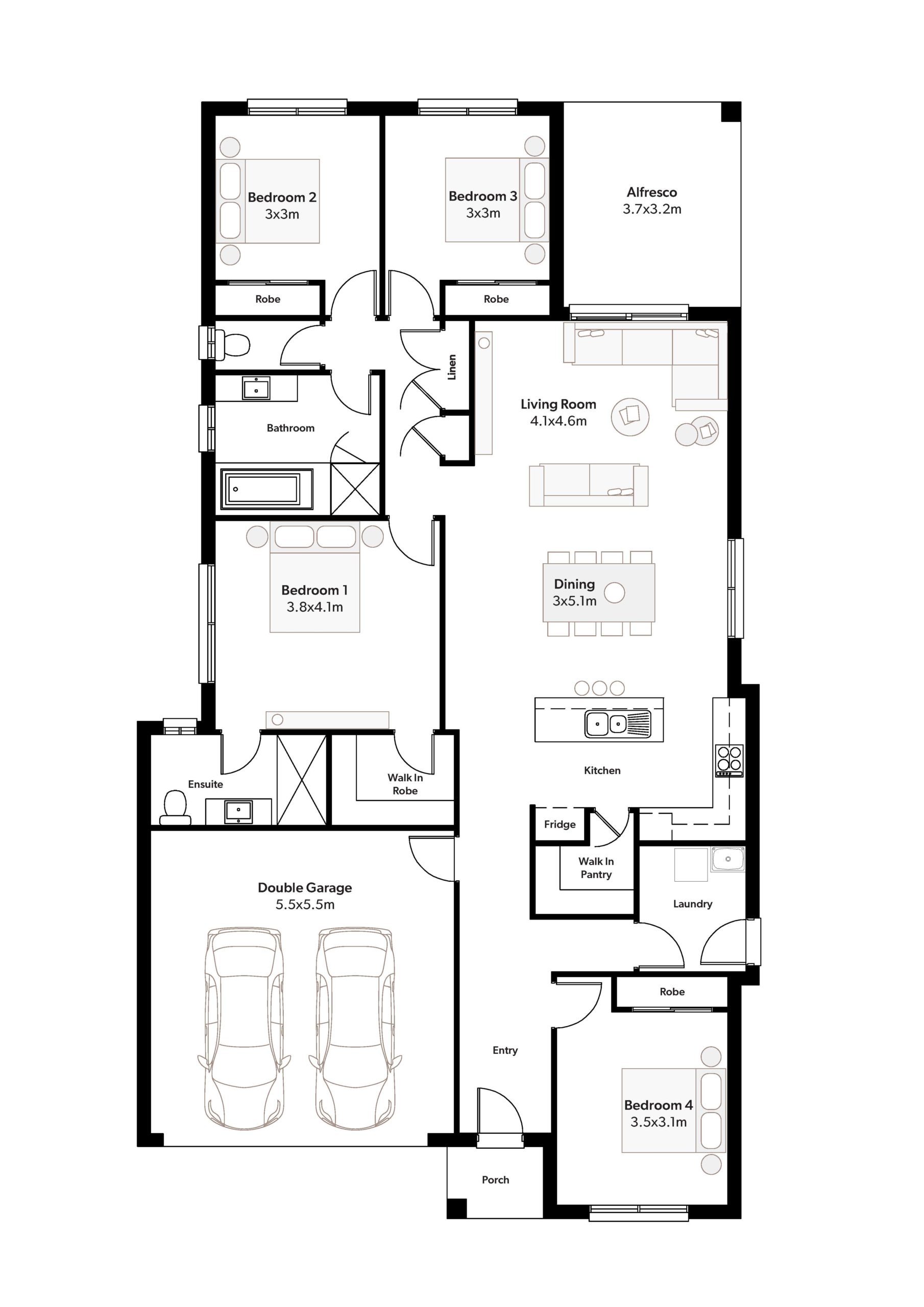 The Bronte 20 is a beautiful family home with open plan living, master bedroom and alfresco great for entertaining!